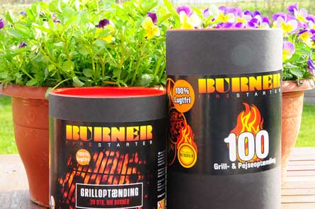BURNER är en dansk utvecklare av luktfria tändpåsar förpackade i praktiskt emballage. Fabriken ligger i Köpenhamn och produktionen sker med hjälp av nya, effektiva produktionsmaskiner med stor kapacitet för att klara efterfrågan och säkra korta leveranstider. |